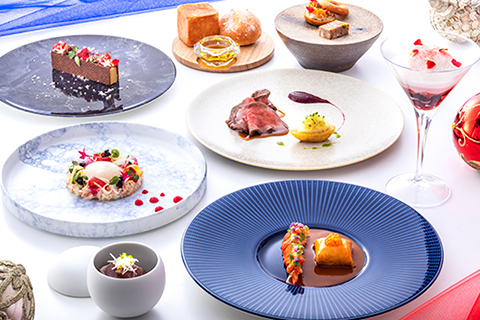 館内3店舗の美食コースを巡る、お得なペアディナーチケット。