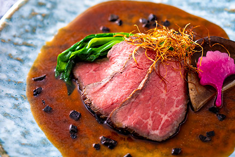 - 和牛肉のローストビーフ ブラウンソース